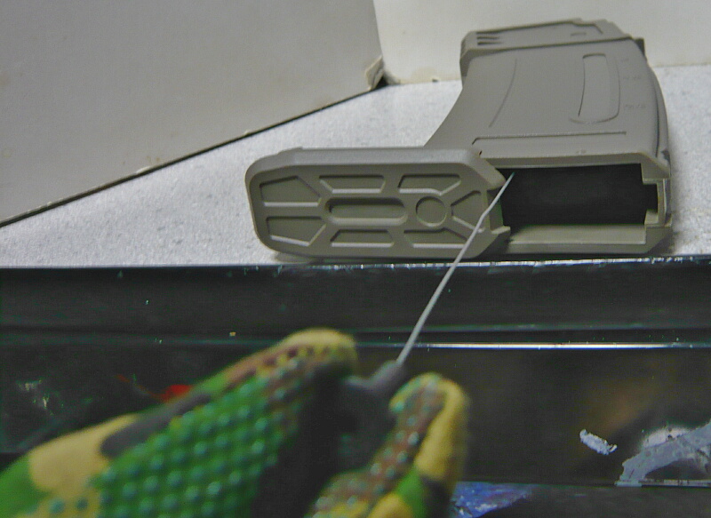 マガジン底部。多弾マグといえばゼンマイ巻きですが、このマガジンは底部に露出した歯車をカリカリ巻くのではなく、農機具のエンジンのスターターのようにヒモを引っ張ってゼンマイを巻く仕組みになっています。