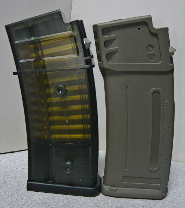 半透明スモークのマガジンで、残弾が視覚的に確認できる便利なマガジンです。