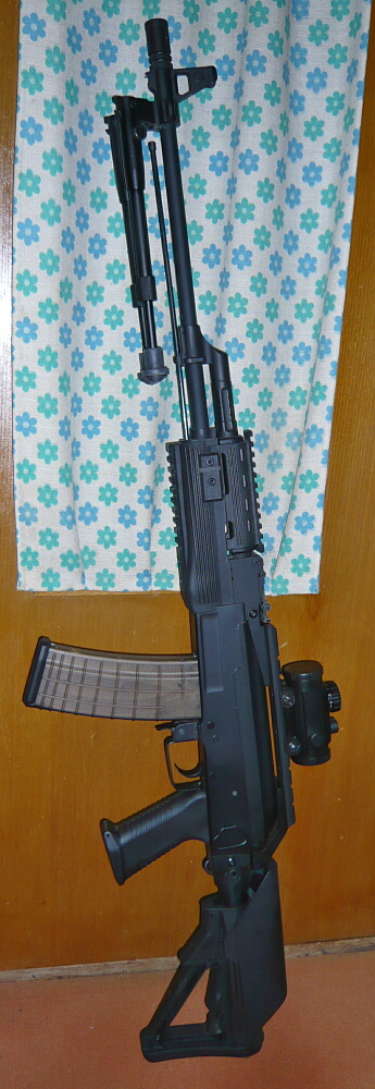 銃自体は今は亡きBBキングで2012年頃に買ったもの。セミで撃っているとトリガーがロックしてしまう症状が出るのでメカボックスを開けて分からないなりに調整しつつスプリングだけ交換、あとはアウターバレルのロング化とストックを換えたくらしかしていません。セミの調子が悪いならフルで撃てばいいじゃない、という事でこの姿なのですが、RPKと比べるとアウターバレルが細くて貧相だし、今は同じCYMAからこの銃にちょっと足した程度の金額で買えるRPKがあるんですよね・・・