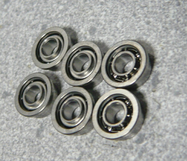 電動ガン用の軸受けはマルイが純正で多用しているプラ軸受け、海外製に多い金属製でグリス溜めの溝があるものや、潤滑性のある材質を混ぜ込んで成型されているオイルレスメタル、そしてベアリング軸受けがあります。それぞれに長所短所があり、ヘビーユーザーには頑丈なメタル軸受けが適していますが、ライトユーザーならコストの安いプラ軸受けで十分だったり、高価だけれどスムーズさに優れるベアリング軸受けが向いています。ただしベアリング軸受けはヘビーユースだとベアリングの球が高負荷ですり減ってガタが出たり、粗悪なベアリング軸受けはそれが早期に発生したりと、良い面ばかりではありません。