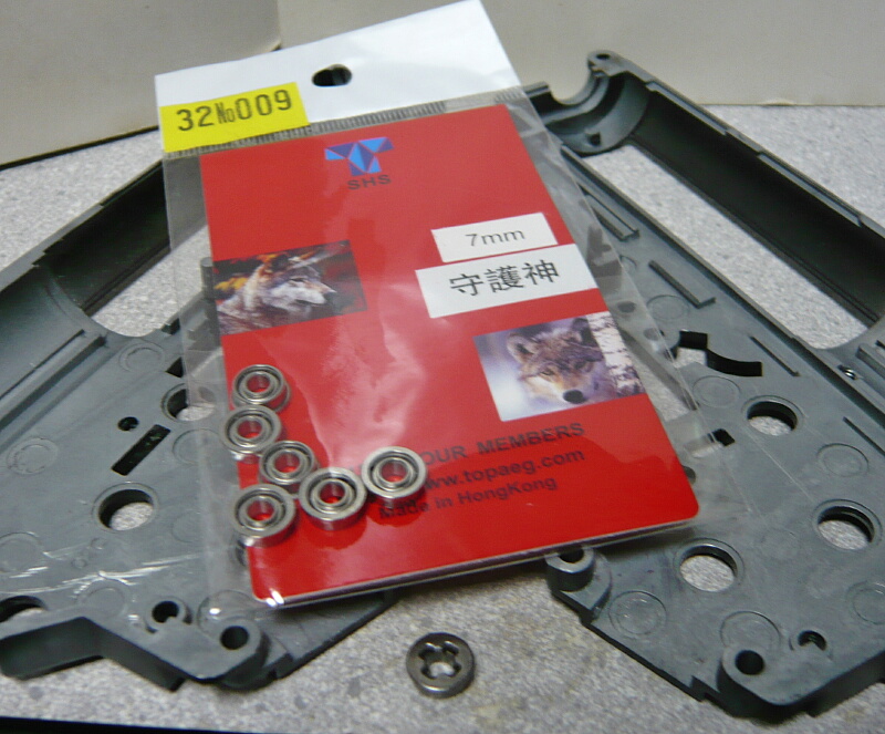 さて取り出したSHSの7mmベアリング軸受けですが、6個中2個の外見がなんか違う・・・中心に入っているパーツが2つだけ逆についていますが、機能上問題無いとはいえどうも気になってしまう。