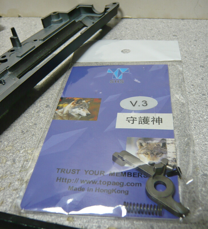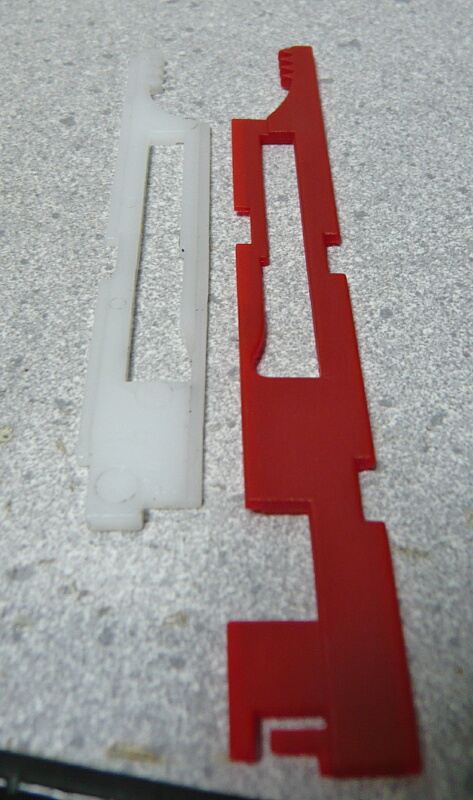 と思ったら、あれー?何かいらん部分が付いてる・・・Ver.3メカボックスを共用する銃のうちスイッチも操作するもののためにこの延長部分があるようです。なので元々付いていたセレクタープレートにこの部分が無い場合に置き換えで使うならこの部分は切り飛ばしてしまって良いでしょう。