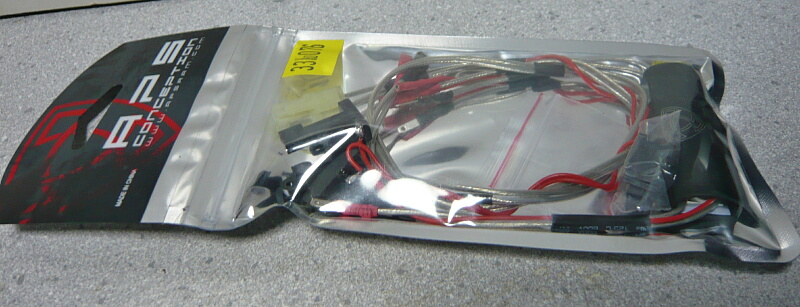 FETキットはスイッチのメス側にはんだ付けされた配線と、そことつながる配線とバッテリー方向へのコネクターと配線が生えたFETユニット、オス側のスイッチがセットになっています。ただ、この製品はVer.2用のスイッチが付いており、Ver.3メカボックスに使うにはハンダ付けをやりなおさなければなりません。(APSのFETキットはVer.3用も別にちゃんと売られているのですが・・・)