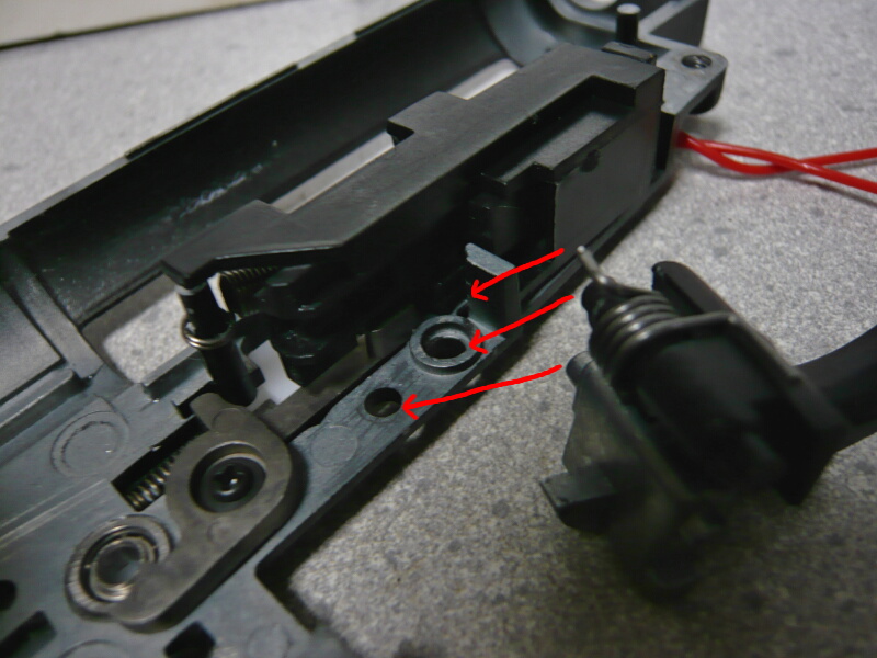トリガーは3パーツで成り立っており、これをスイッチの後方へ取り付けます。