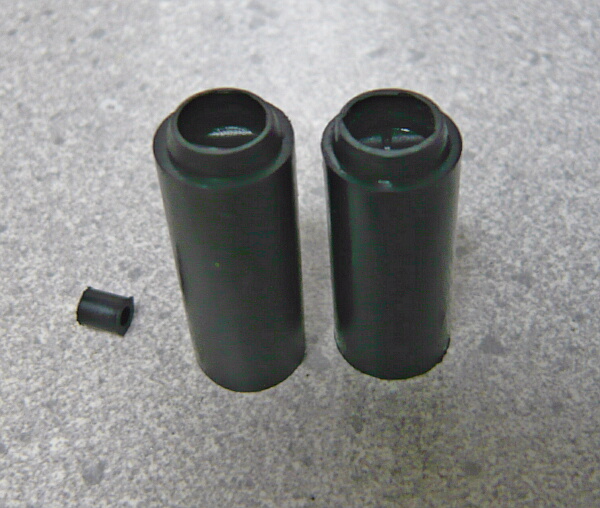 チャンバーパッキンもマルイ純正のに換えておきましょう。左がマルイ純正、右が元々付いていたものです。形は右のがPDIのWホールドチャンバーパッキンに似ていますが、ここは形も大事ですが素材が一番大事。じゃなきゃマルイ純正のこの平凡な形が定番になってないって。左にある小さなパーツはマルイ純正パッキンに付いてくるホップの押しゴムですが、銃の方には以前ここを触った時に脱落させてしまったのか入っておらず、ホップが効いていない状態だったようです。(何か、イマイチ飛びが悪いとは思ってたけれど・・・)