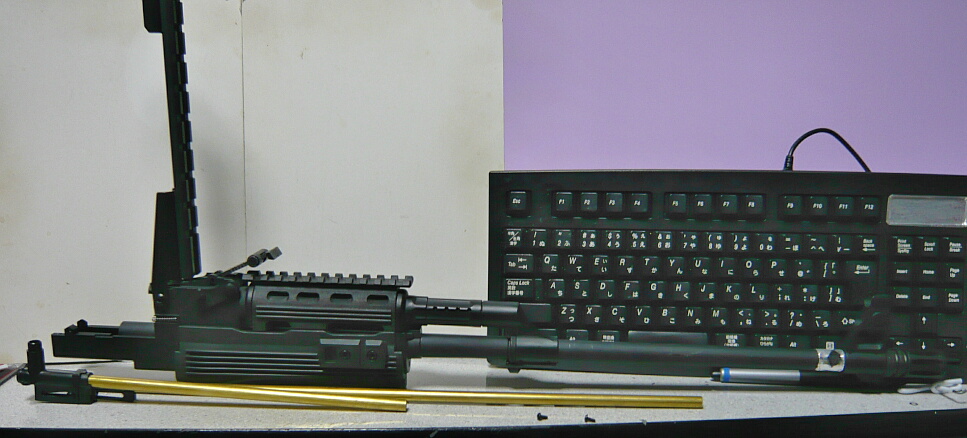 台湾のWE(ガスブローバックの長物が有名ですね。電動ガンもあります)製の真鍮インナーバレルで長さは257mm。シリンダーの対応長に対してやや長いですがこれ以上短いのが無かったんだもの・・・