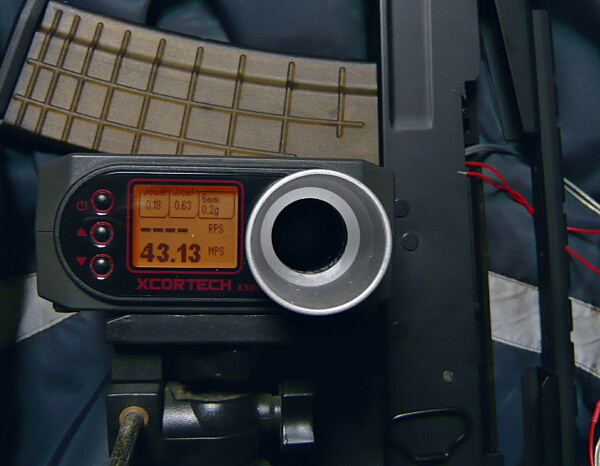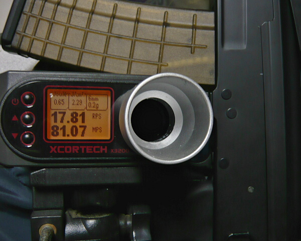初速チェック。銃口から弾がジャラジャラこぼれてきます。たまに飛ぶと初速は驚きの10m/s前後。ダメだこりゃ!
