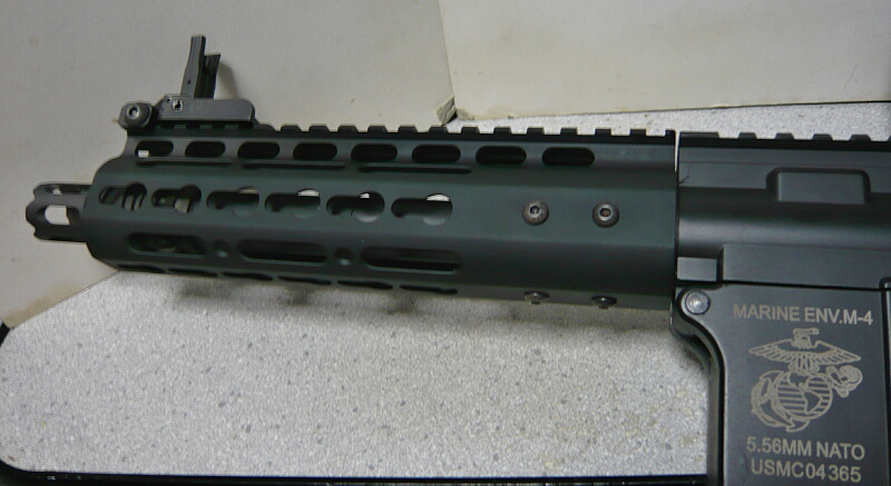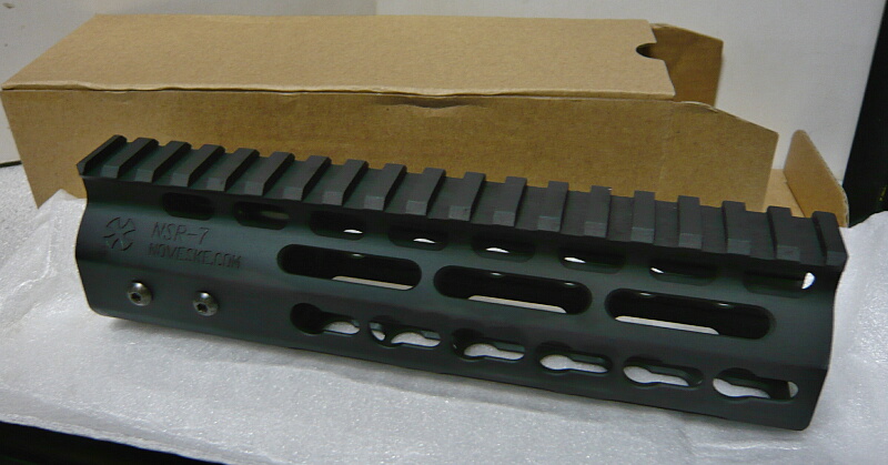 そこでトップレイル以外はオプションとなっているKeyModハンドガードの登場です。少し前にG&GのCM16に9インチのKeyModハンドガードを取り付けましたが今回は7インチ。5KUのNSR Keymodハンドガード7”です。