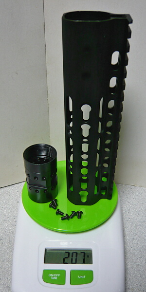 こちらのハンドガードとバレルナットは155g。サプレッサーの重さもあるのですが、ハイダーを取り付けるのでイーブンくらい?