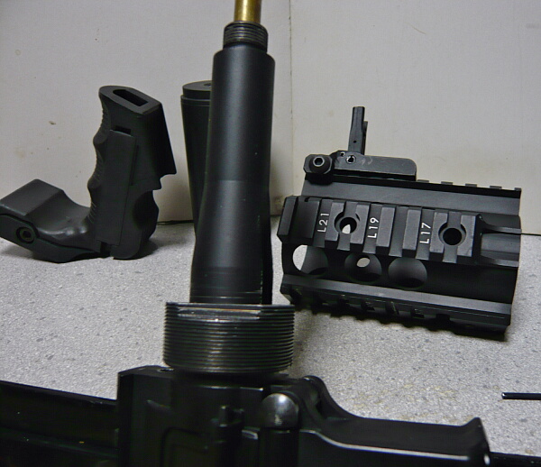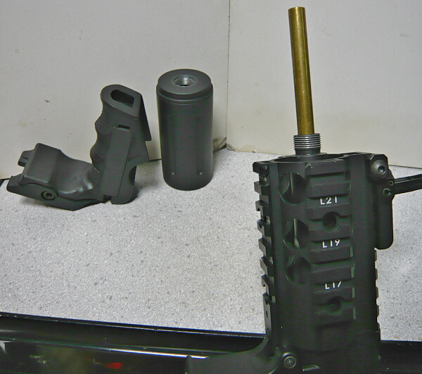 それでは早速取り付けにかかりましょう。銃からサプレッサーとフォアグリップを外します。