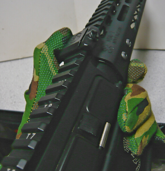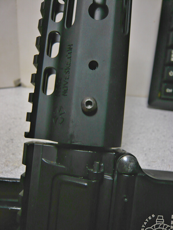 と、ハンドガードのネジ留め穴が丁度いい位置に来ないのでバレルナットがやや緩めに締まっており、持ってひねると簡単に回ってしまいます。