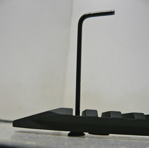 差し込んで前方にずらし、レイルの裏にある丸い突起を隣りのKeymod穴の大きい側にはめるようにしたら六角レンチでネジを締めて固定します。