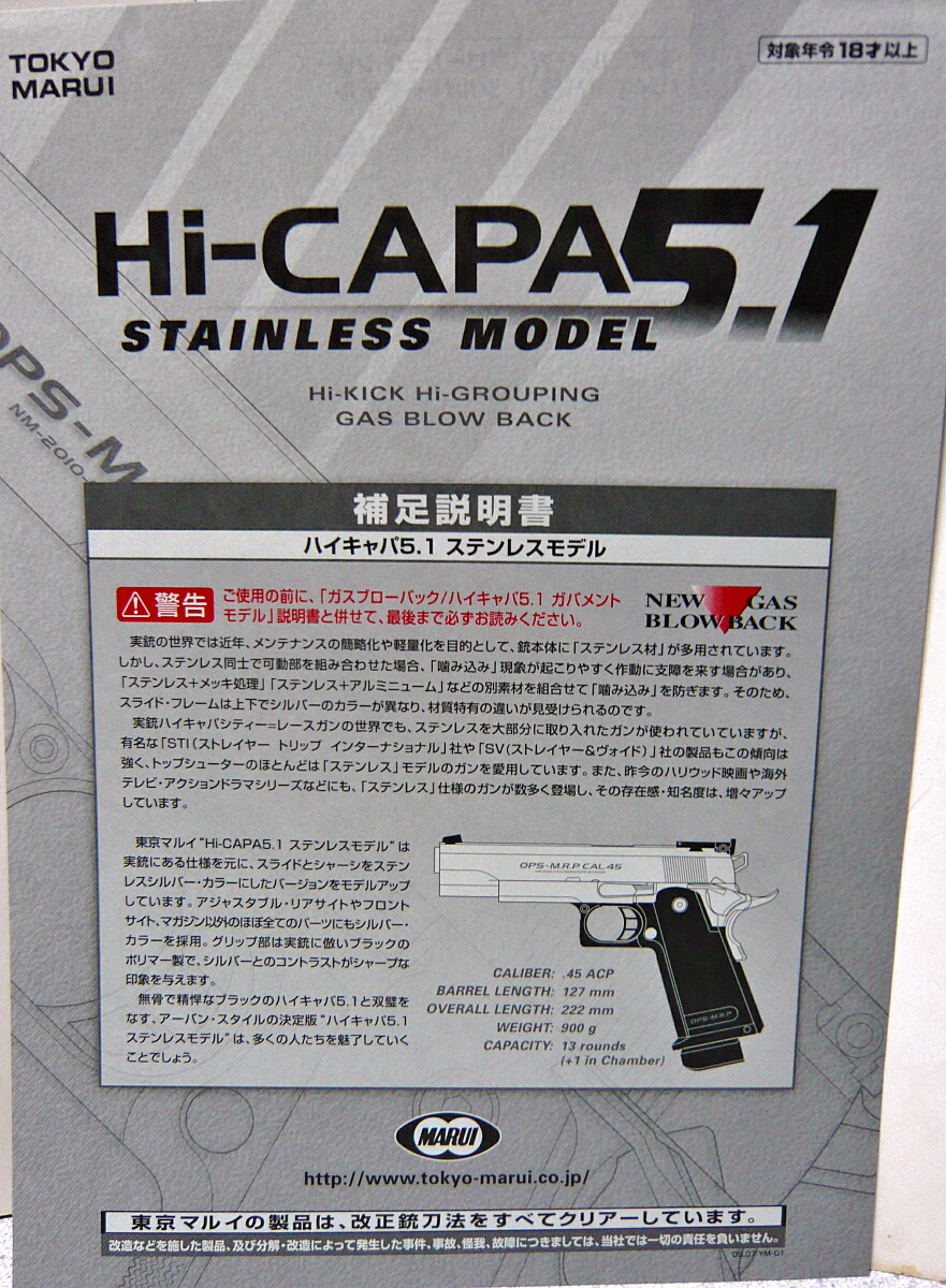 東京マルイのハイキャパ5.1ステンレスモデルです。