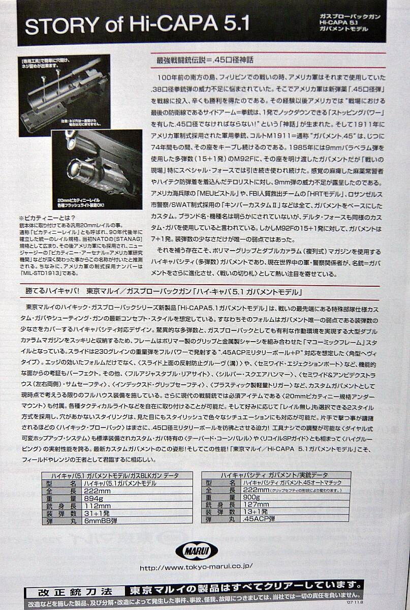 重くて高級でデリケートなWAデルタエリート、性能は申し分無いが道具的で撃っててつまらんP226レイル。今回のマルイハイキャパ5.1はとにかく撃て!撃て!というアピールを感じます。所々に見える安っぽさはまあ、豊富にあるアフタパーツ頼み。やっぱみんなが良い良い言うだけの事はあります。