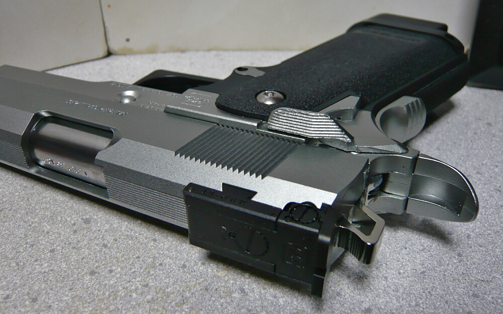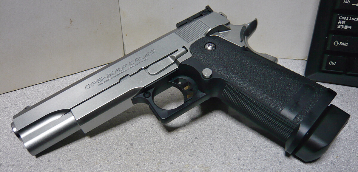 ハイキャパはM1911A1の派生型であり全体形はガバメント系のそれですが、角がパシパシ立っており無骨な印象。