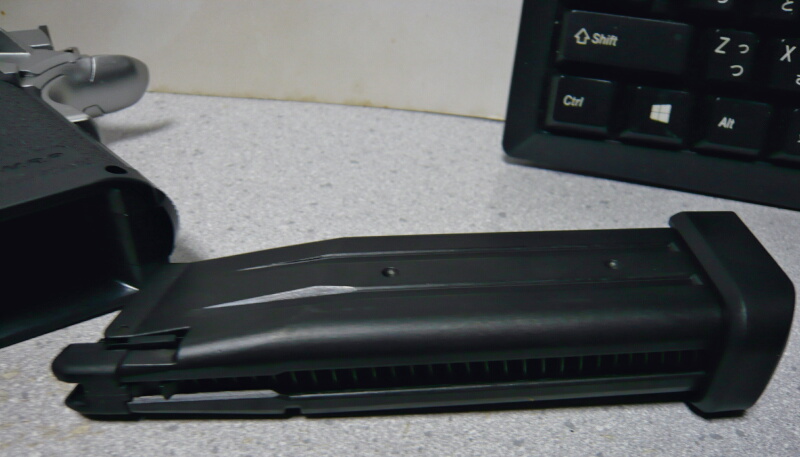 ただイメージとしてはこんなデカいマガジンがガバに入るのか・・・という印象。装弾数もガス容量も貧相なガバの欠点を大幅に改善した部分がこのハイキャパのマガジン。