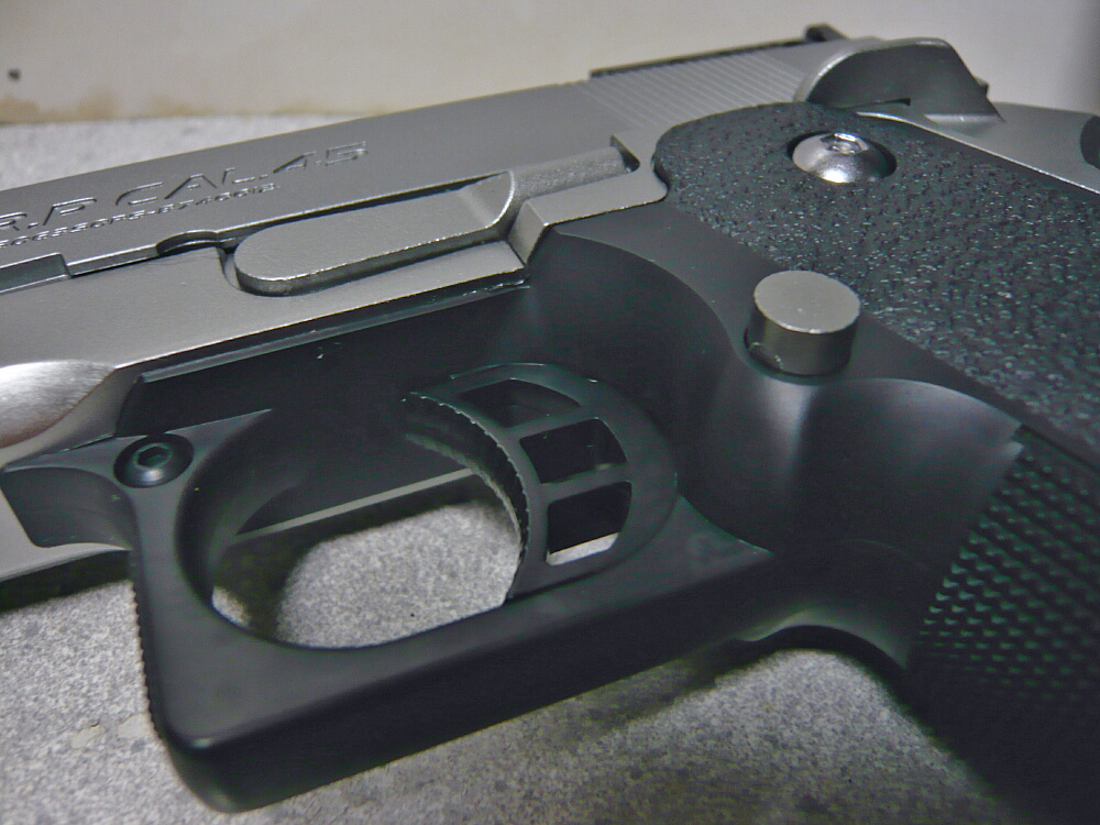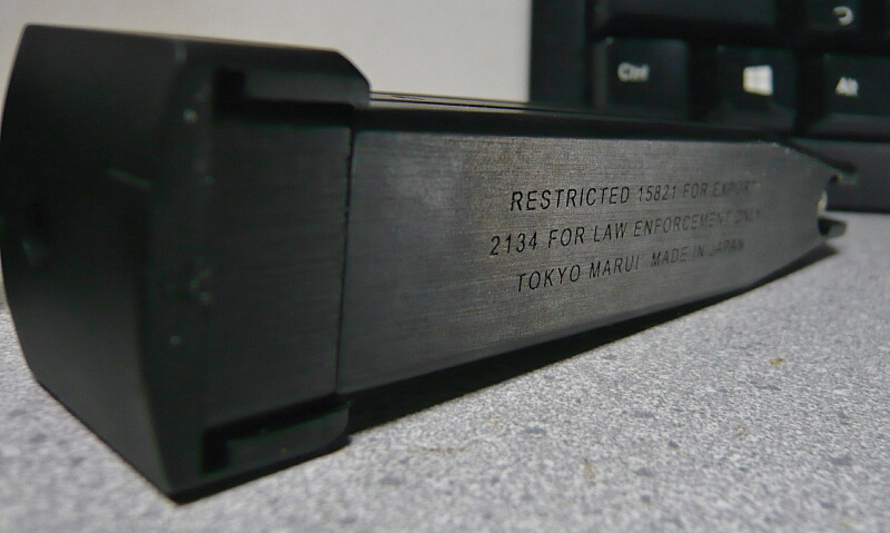 重いといっても所々実銃の重量を超えないようにするための軽量化?が見られます。トリガーやマガジンキャッチはプラ製で、ここを社外品の金属製パーツに換えると実銃の重量を超えるでしょう。