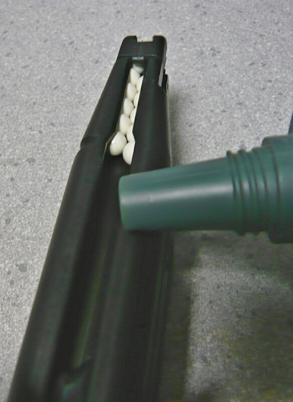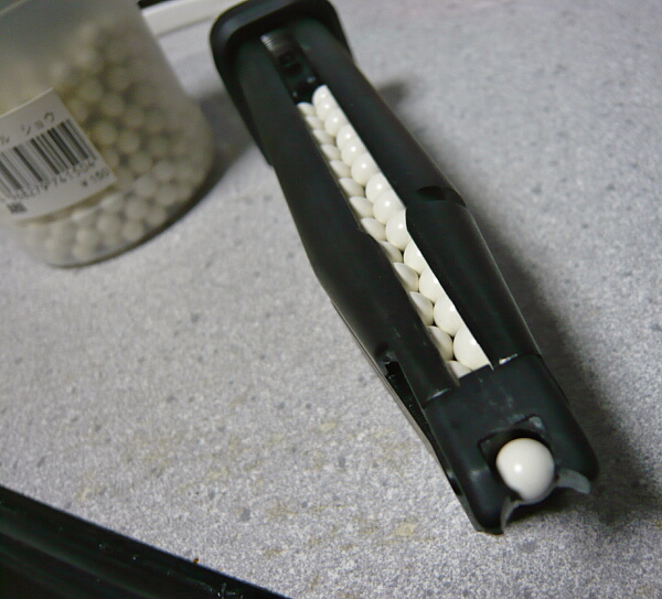 31発入ります。BB弾を取り出す時はフォロワーを引き下げてマガジン前面を下にして揺するとバラバラ落ちてきます。