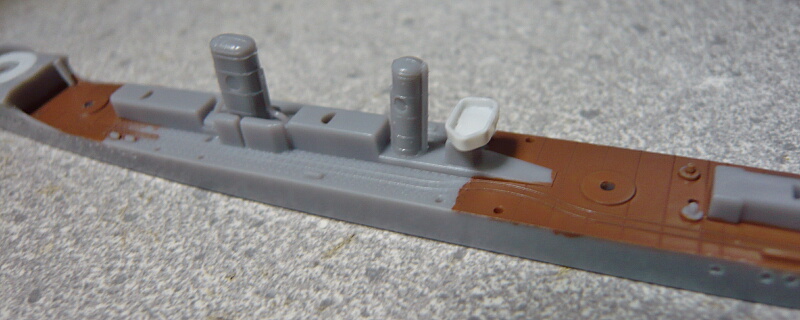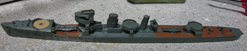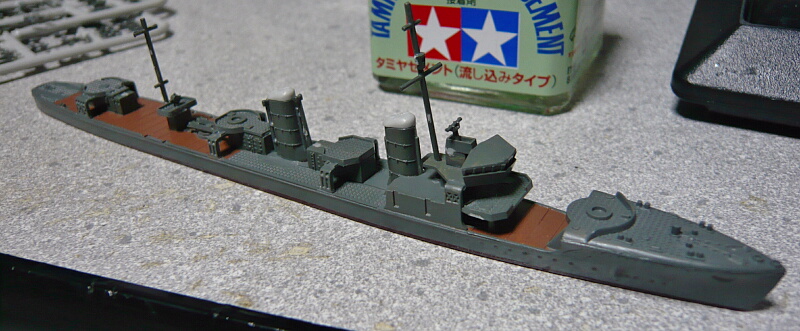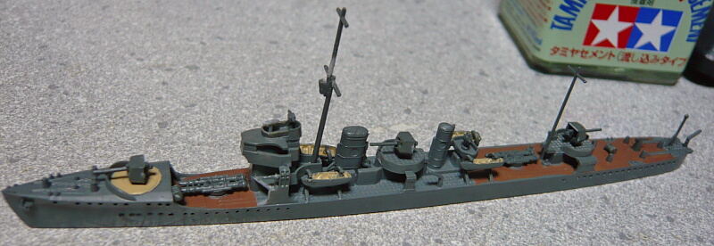 とりあえず一旦32軍艦色2で塗装。キットは喫水が高すぎるので艦底パーツは取り付けていません。