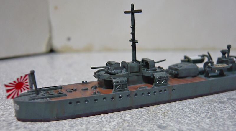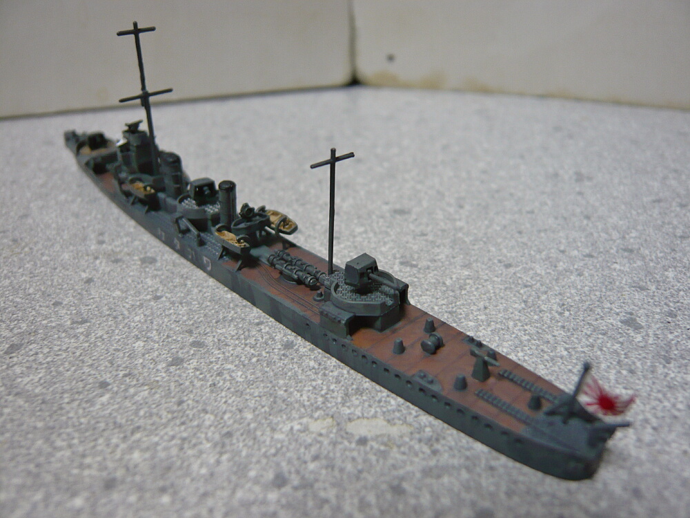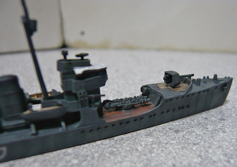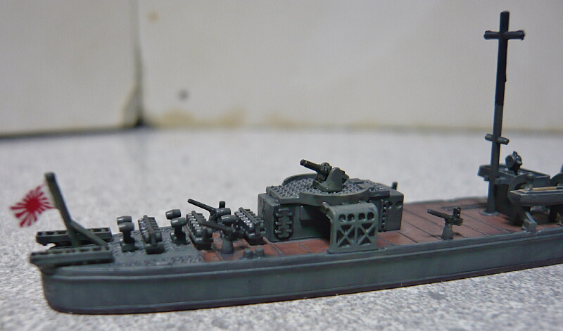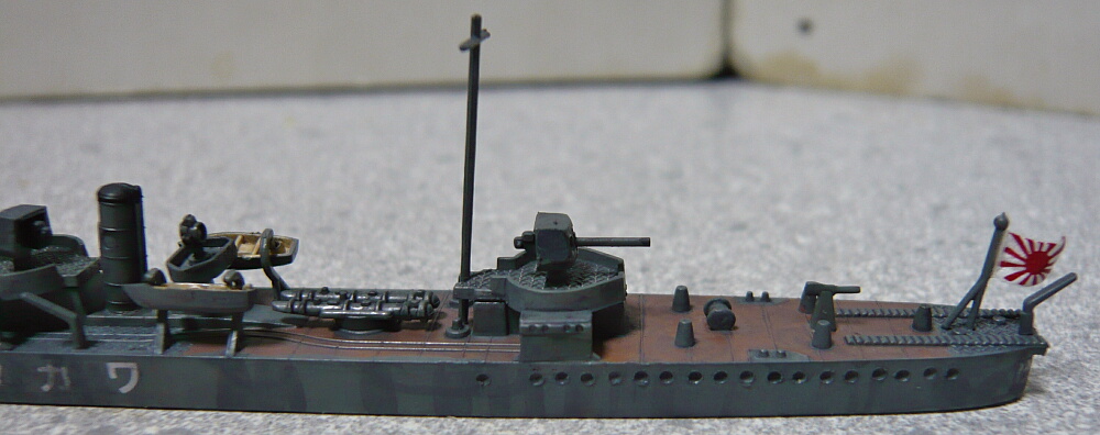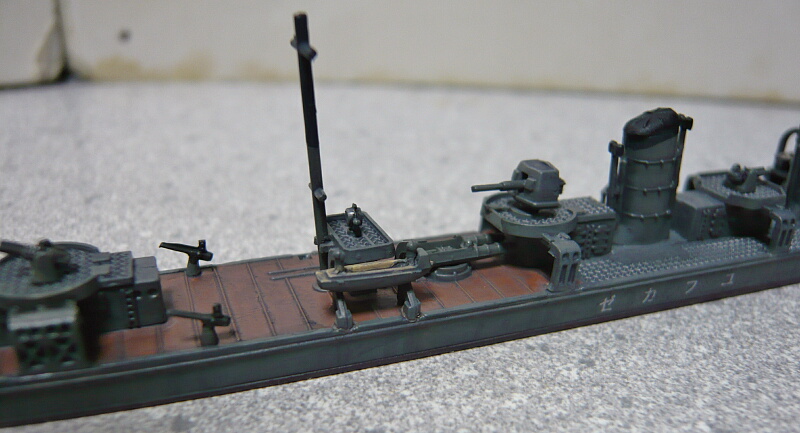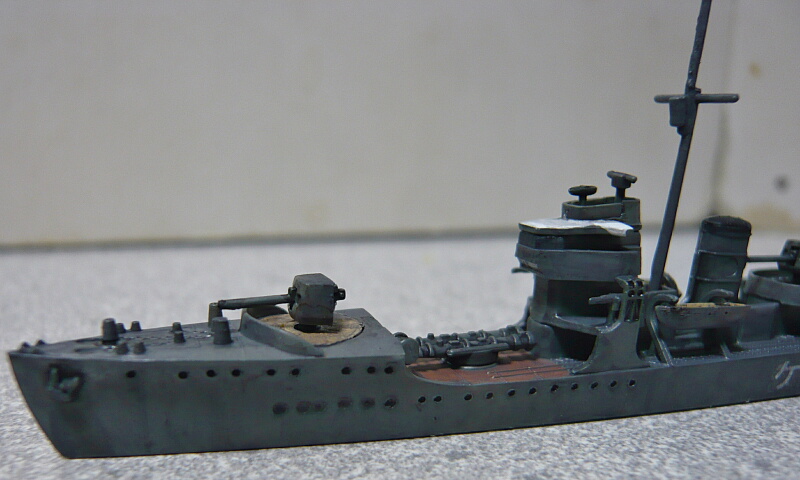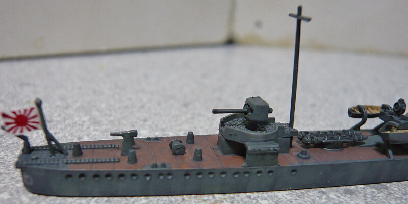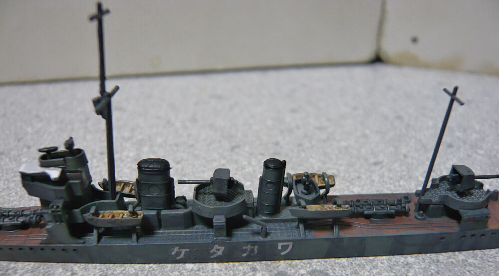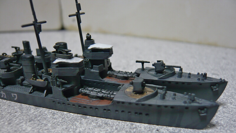 細かい塗装が済んだところ。艦橋屋根も若竹ではもう少し形状が違うのですがパテが要りそうなので割愛。少ない手間でパッと見で若竹に見えれば十分かな・・・