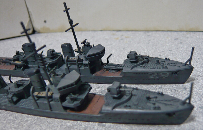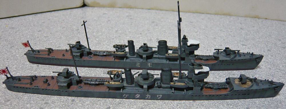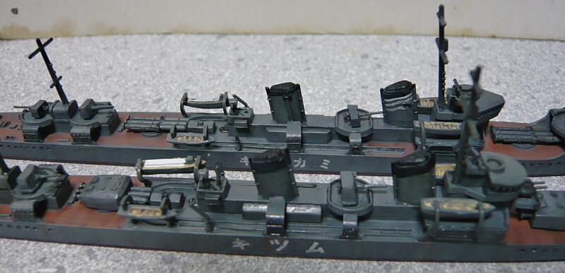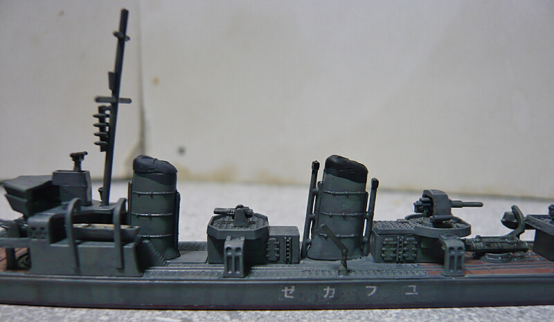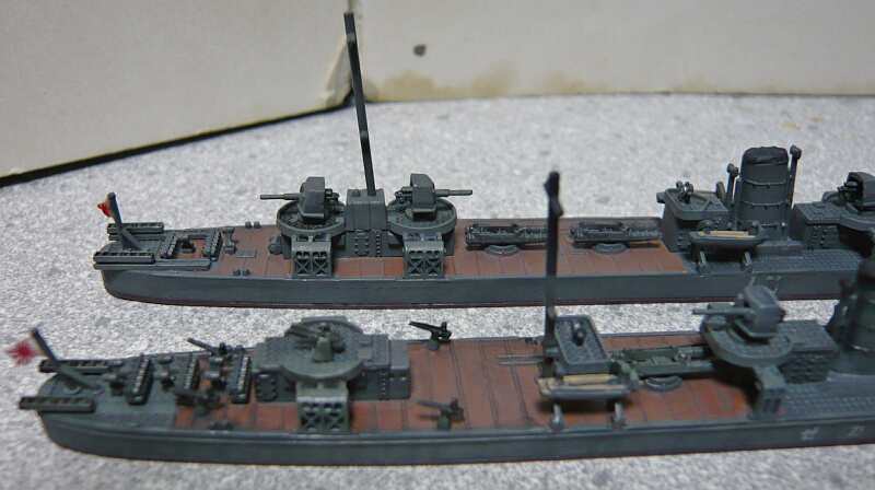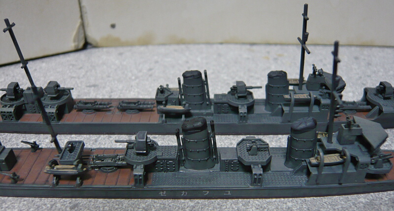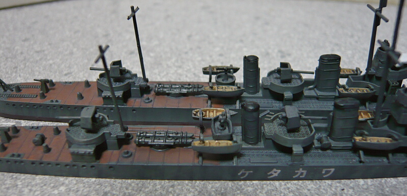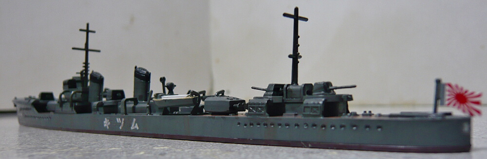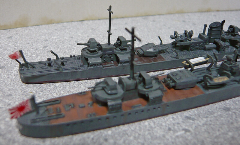 ピットロードの睦月型も船体側面のディテールは浅いので側面の見た目はそれほど劣りません。ただ喫水の高さは好みが分かれるかも。