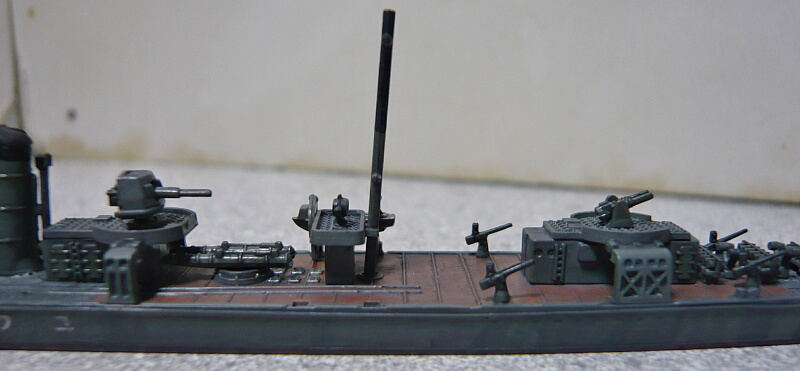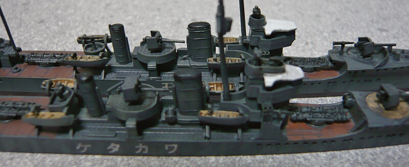 艦橋頂部の台はキットでは丸ですが若竹型では前に延長されて長円型を成しています。また艦橋2階の左右の張り出しも前縁が後方に少し斜めカットされた形に。