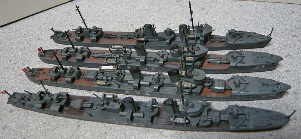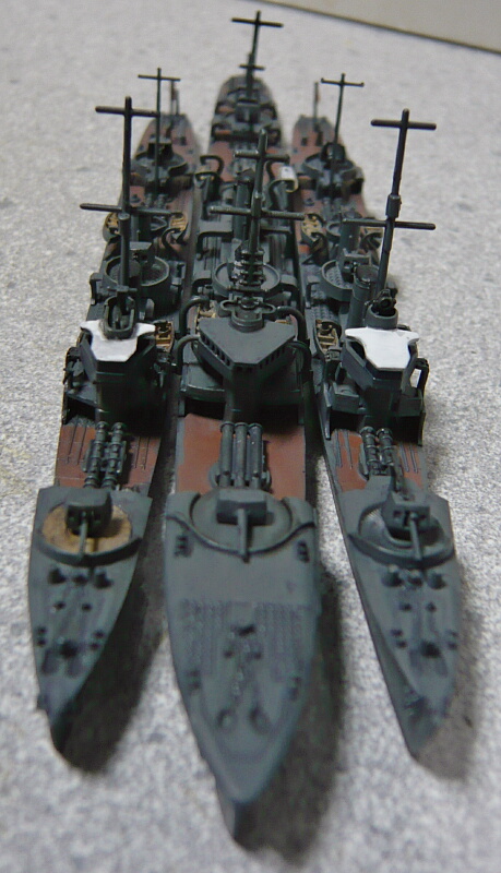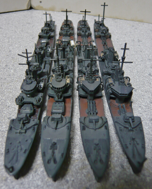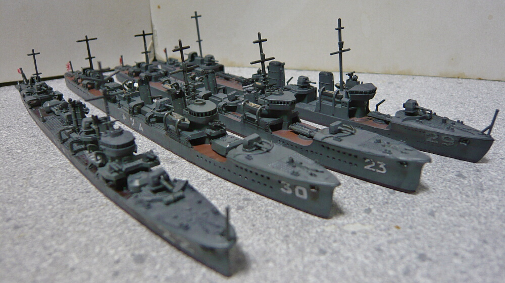奥(上)からピットロード疾風(はやて・神風型)、ハセガワ三日月、ハセガワ睦月、ピットロード長月。