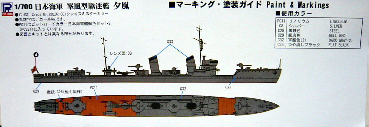 ピットロード1/700スカイウェーブシリーズの駆逐艦夕風です。