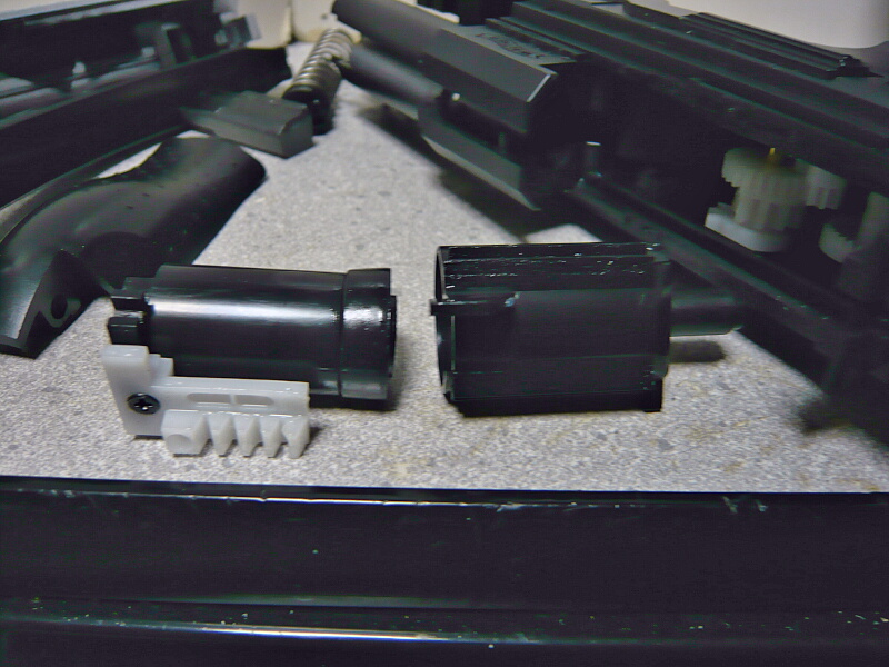 さてこの銃のスライドを動作させているのはセクターギヤと同軸で取り付けられている、もう一つのセクターギヤ。
