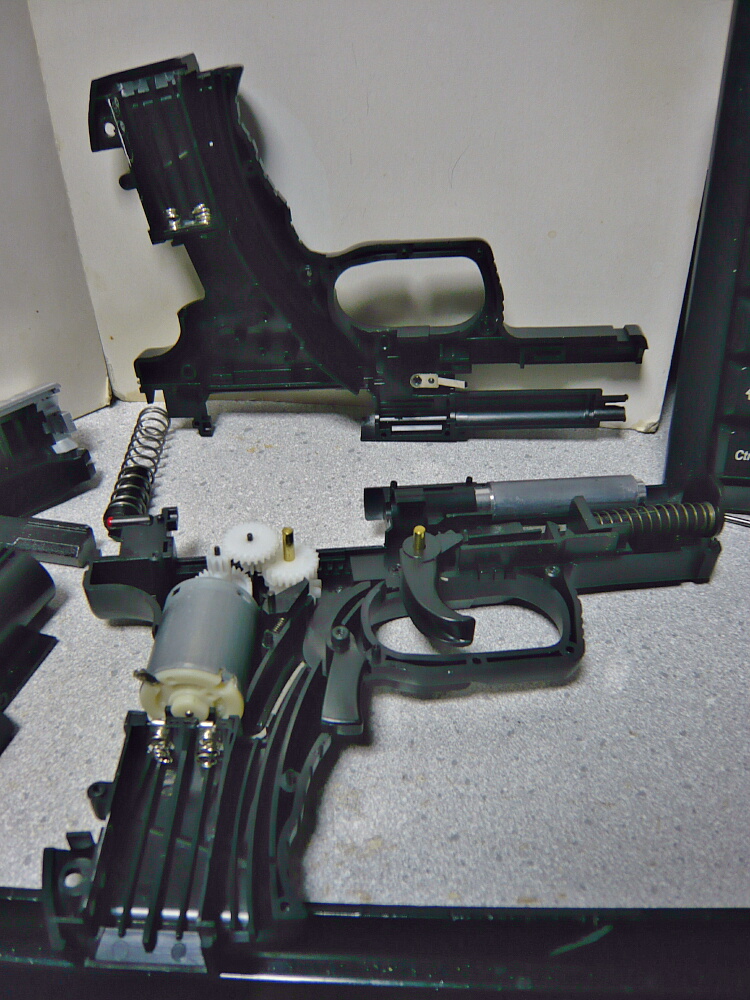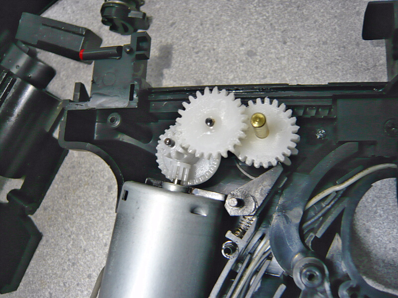ある日、何となく思い付きでスライドに艦船キットに付属するバラスト(金属製の細長い板状のパーツ)を貼りつけて動作させてみたところ、トリガーを引いても「ウィーン、ウィーン」とモーターだけが回っているような音になり、動作しなくなってしまいました。