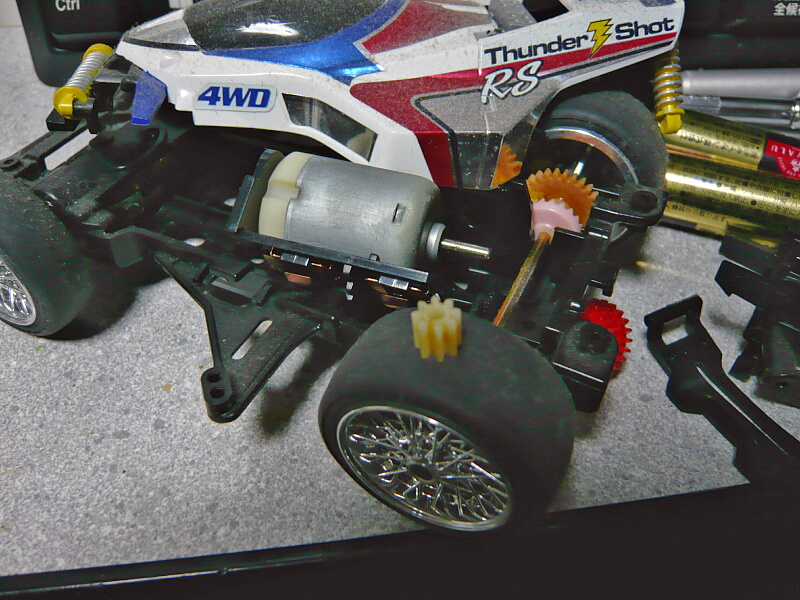部屋の片隅でホコリを被っていたミニ四駆のピニオンが使えないかな?と取り出してみると、同じように割れてるじゃないですか!やだー!
