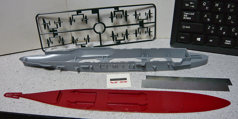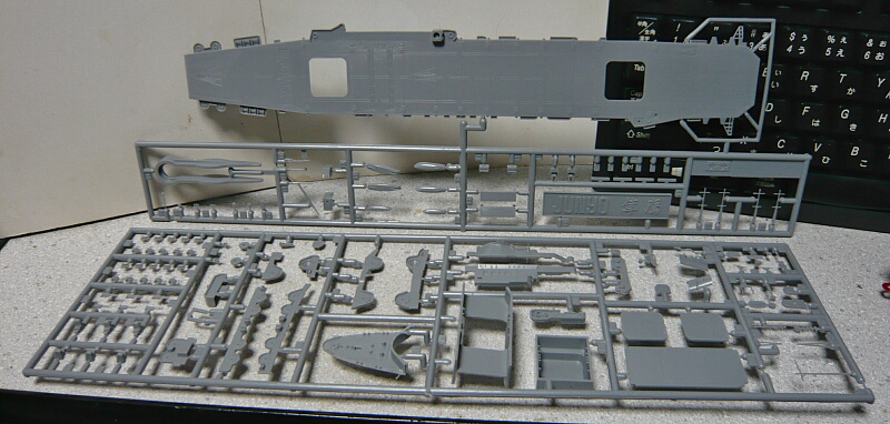 1973年のキットです。今更驚きませんが、艦底パーツの下面に毛筆体で「隼鷹」とモールドされているジジ臭さに年式の古さを感じます・・・