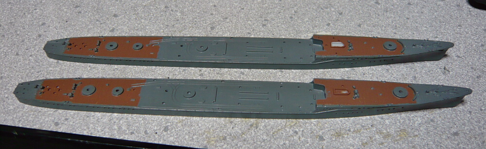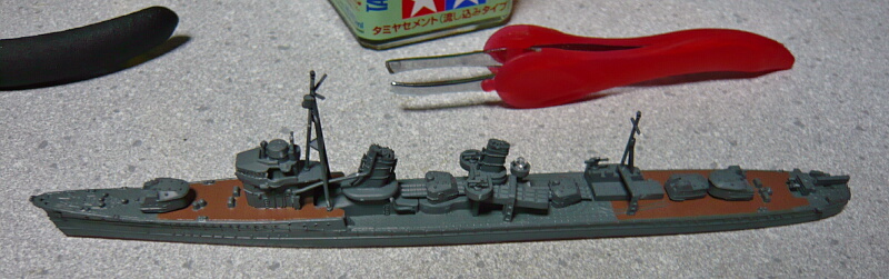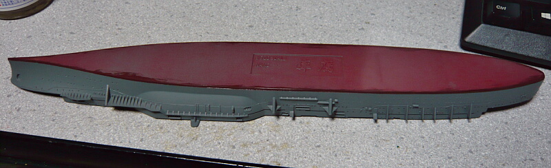艦底色で側面のみを塗りました。こんなデカイの下面全部塗ってられませんし。