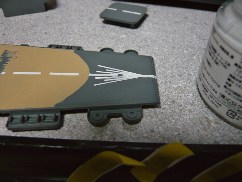 2か所矢印様の白線がありますが、これは1本づつマスキングしては塗り、乾燥後またマスキングしては塗り、とやるのが安全。