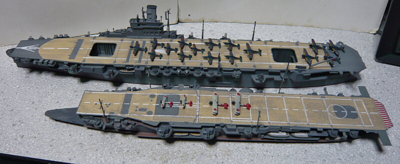 祥鳳と。航空機搭載数が倍も違う軽空母なのでかなり大きさに差があります。といっても長さ方向以外は高さも幅もあまり変わりません。