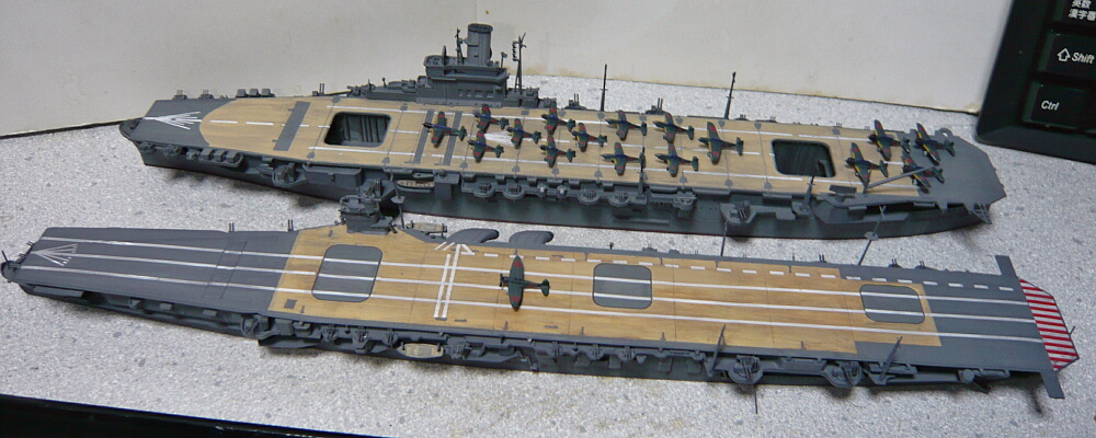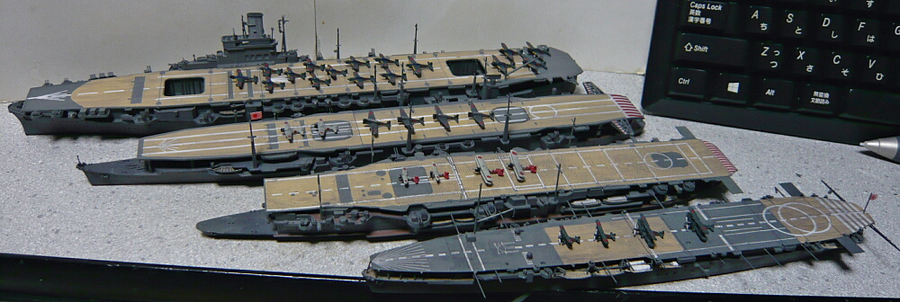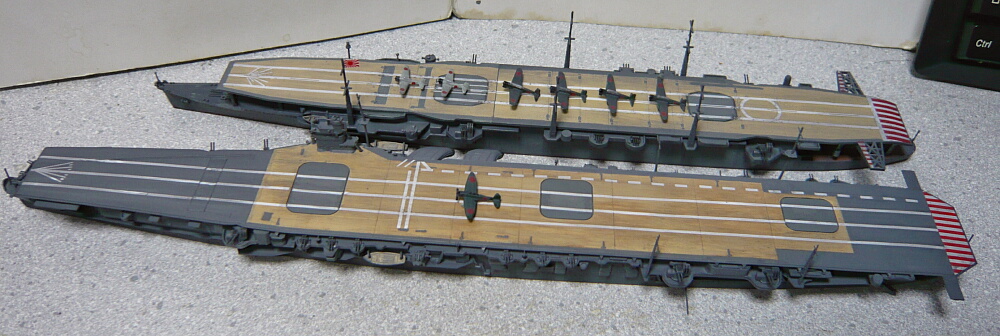 鳳翔と龍驤と。2/3くらいしかありません。でも赤城は蒼龍より2周りくらい長いのです・・・