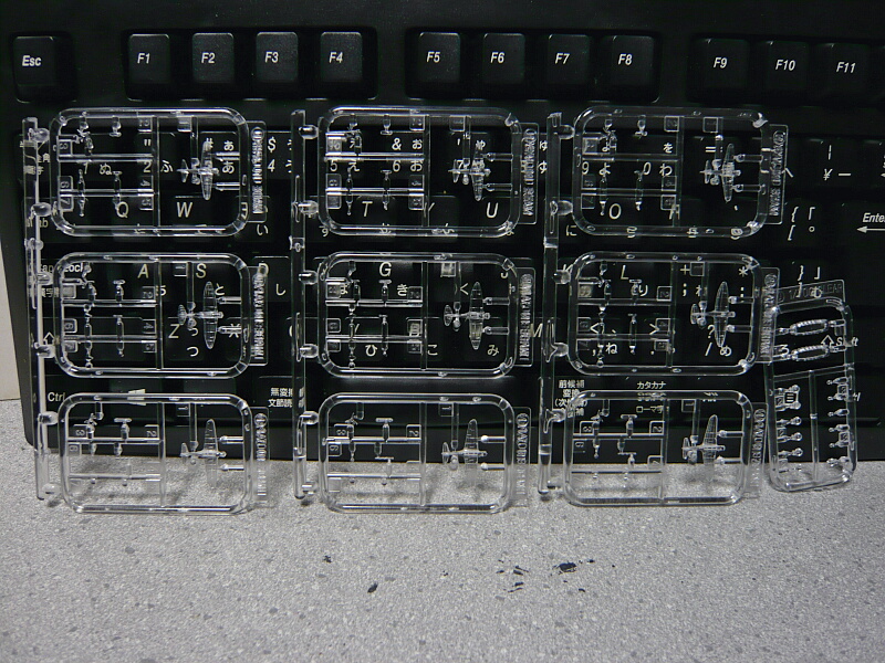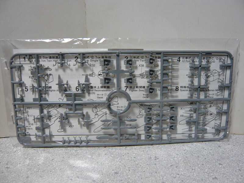 透明パーツは艦載機3種3枚と探照灯パーツ。