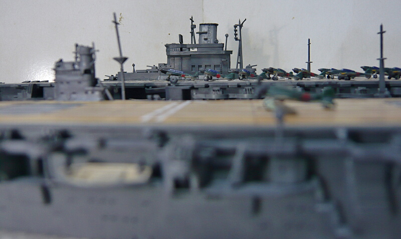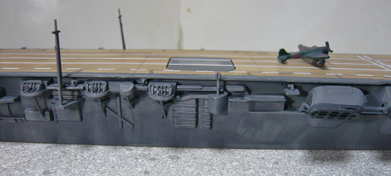 というわけで船体と飛行甲板以外はやや濃い青味掛かった色になってしまいます。