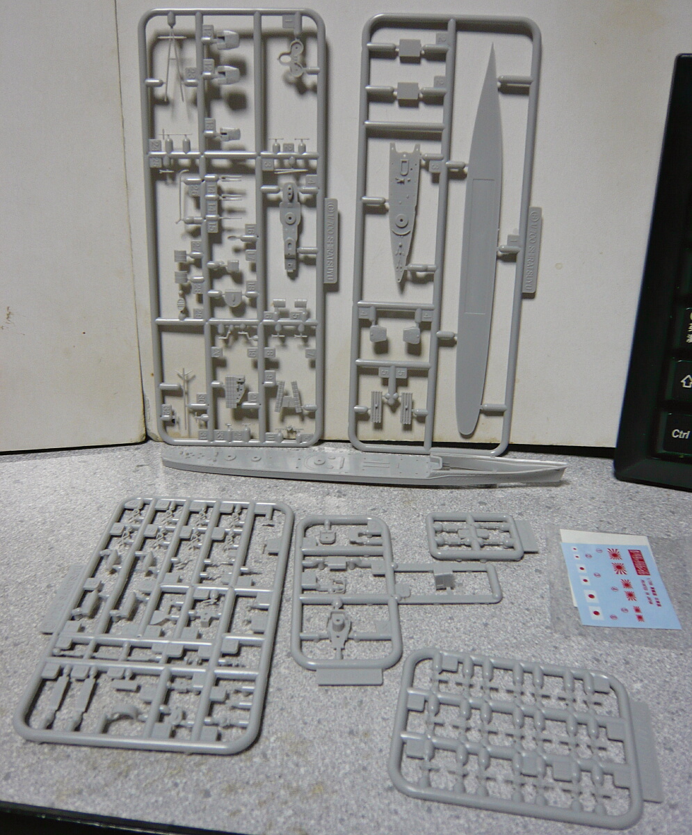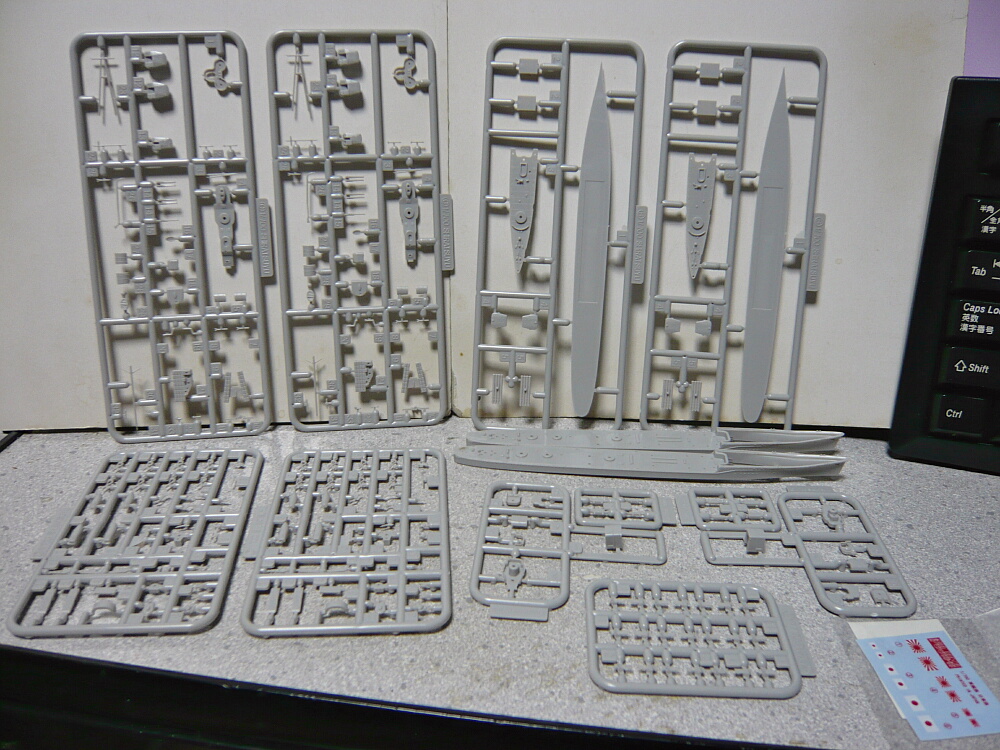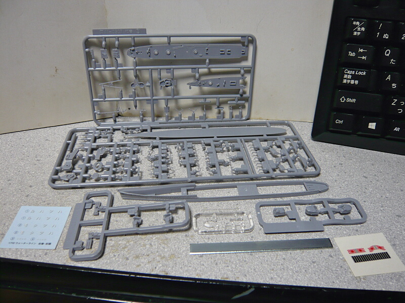 主要パーツ群。デカールは初霜と共用ですが子日に付いていたものとは別で、戦隊番号がありません。