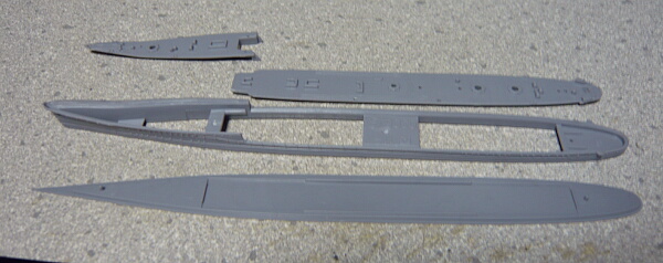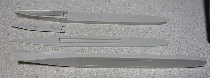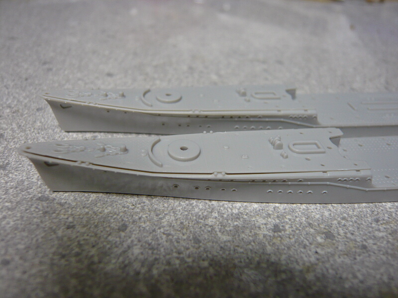 船体パーツは乾舷が低く、艦底パーツは側面に出ないパーツ構成なので全体が薄く見えます。