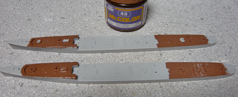 船体側はまずリノリウム色として43ウッドブラウンを。