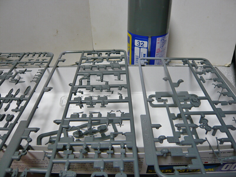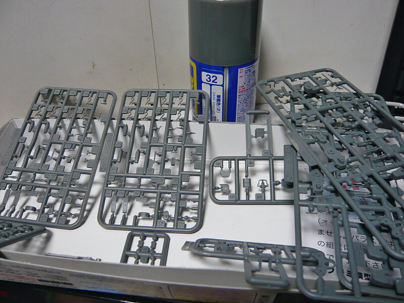パーツがそこそこ多いのでスプレー塗装で手間を省き・・・と思ったら残りものの塗料では足りなかった・・・あーもうamazonでスプレー3個くらい注文してくれるわ。