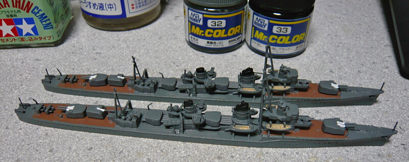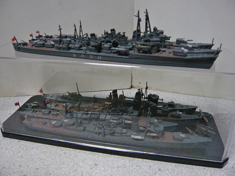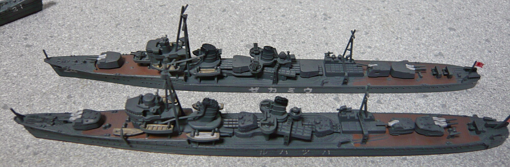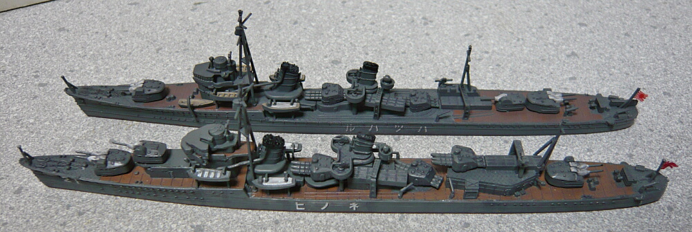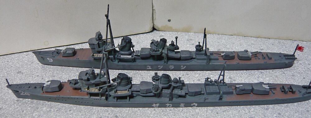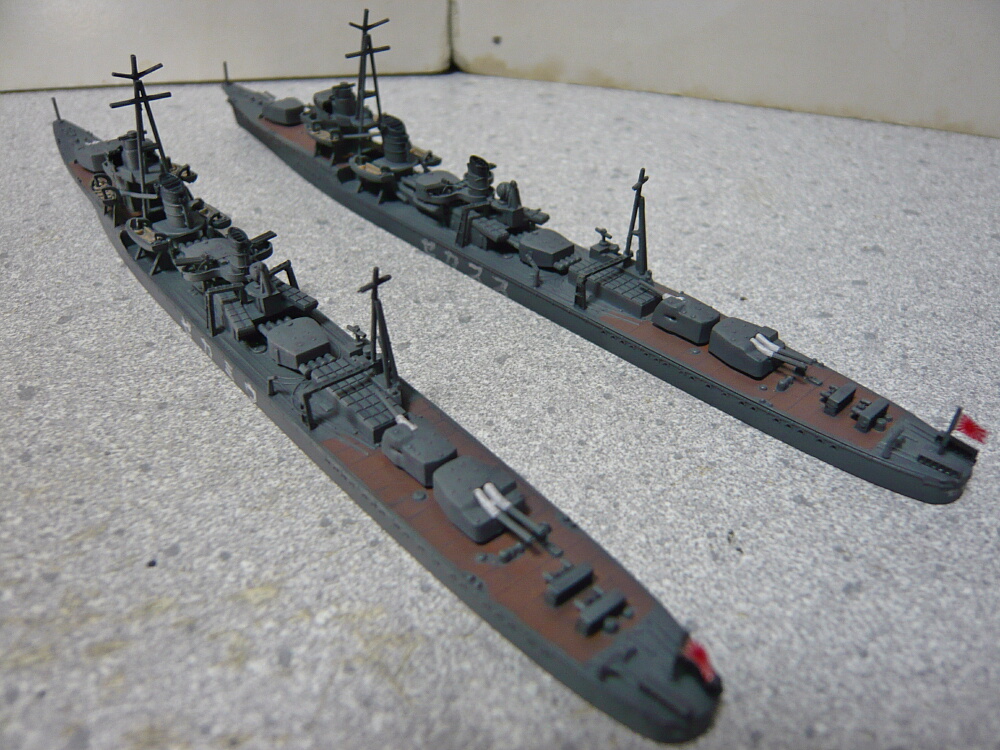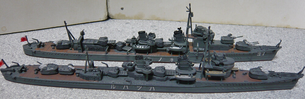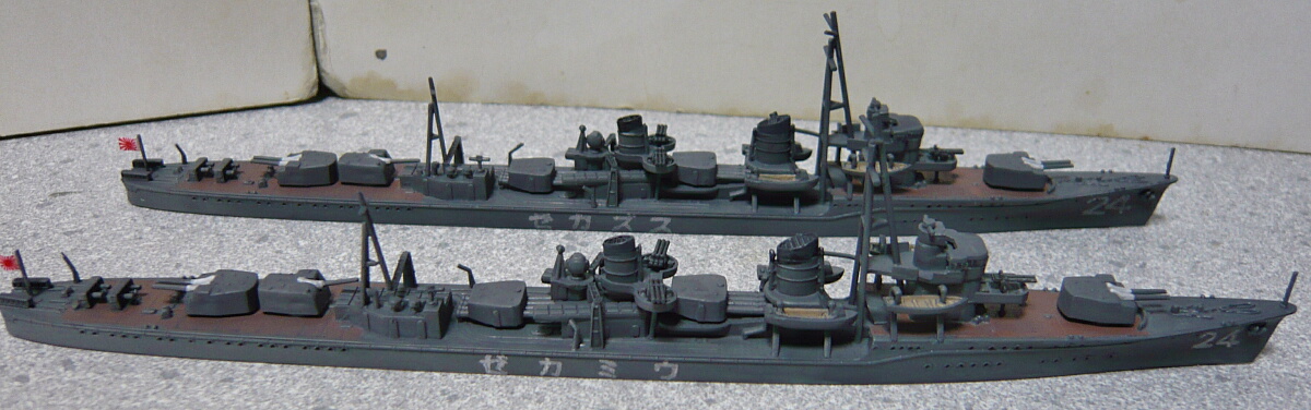 タミヤの白露と。この白露は装備的には開戦時でしょうか?艦橋の形状の差異も同じもののメーカーの解釈違いだけのようにも見えます・・・