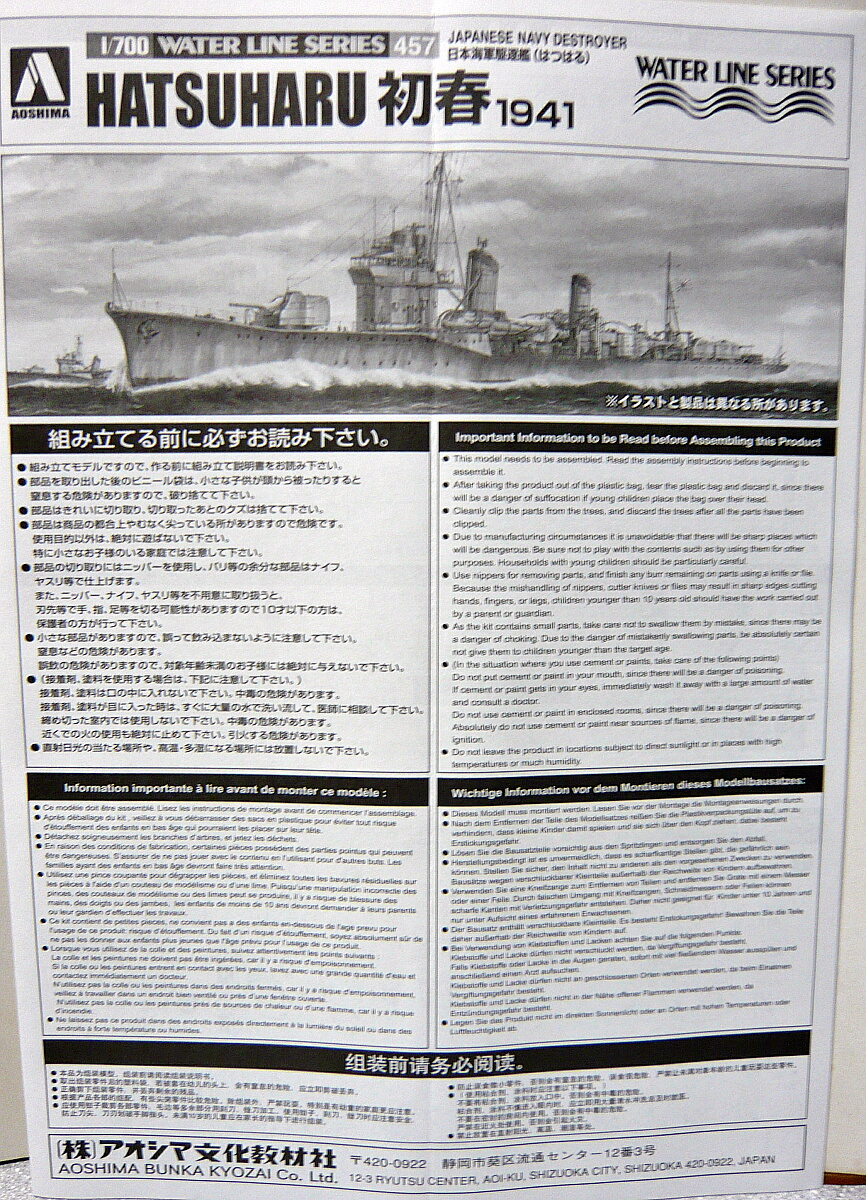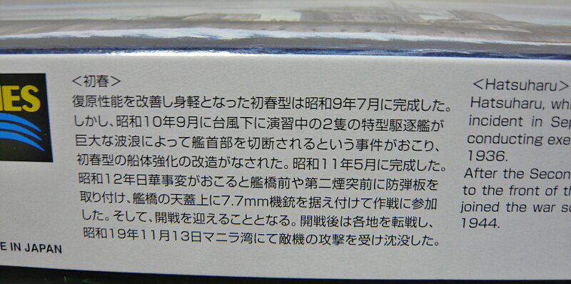 アオシマ1/700ウォーターラインシリーズの駆逐艦初春1941です。