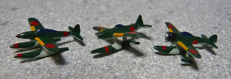 ディテールアップパーツには4種の水上機があるので何となくでこの内3種を組んでみました。左から晴嵐、強風、二式水上戦闘機。