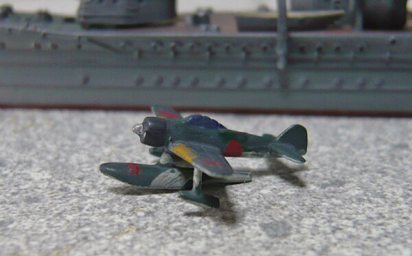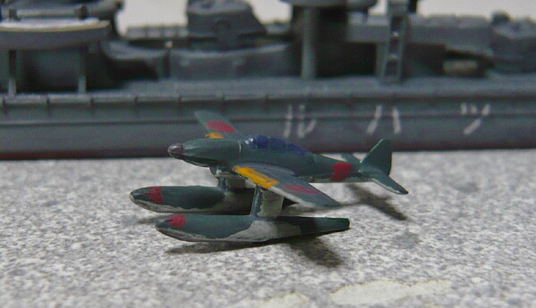 ついでに組んだ水上機3種。まずは二式水上戦闘機。タミヤ白露の時にも白い機体色で組みましたが、今回は上面緑・下面白のカラーリング。零式艦上戦闘機11型をベースに水上機化した機体です。