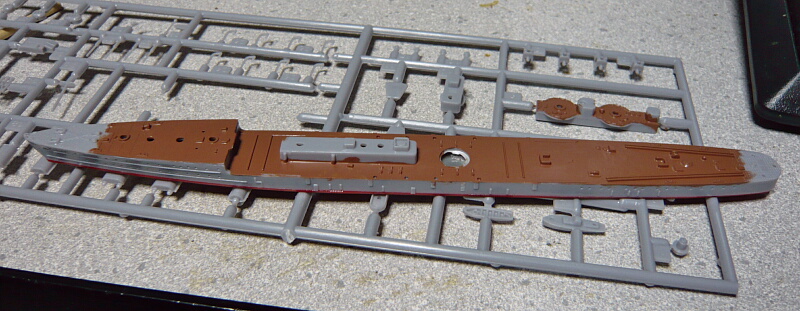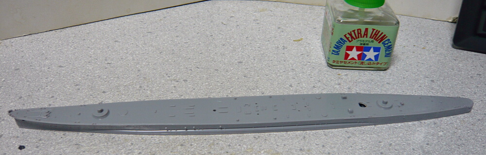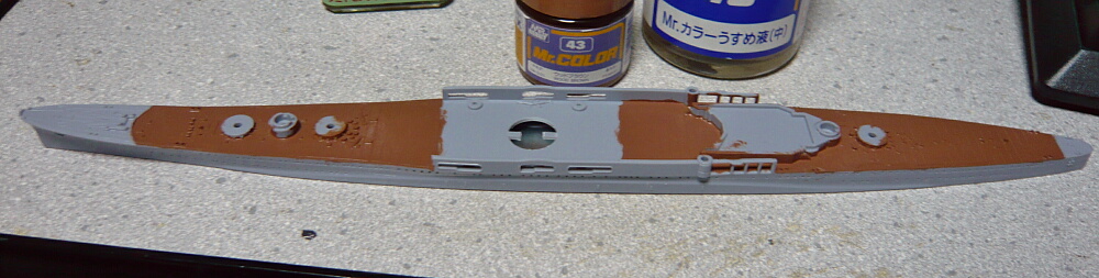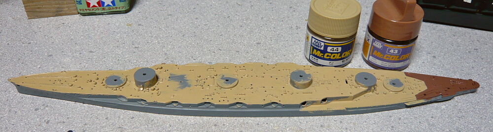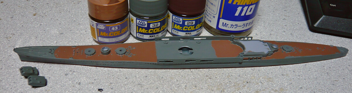 暇が無くて数日放置後、軍艦色2を塗り、艦底色も塗りました。