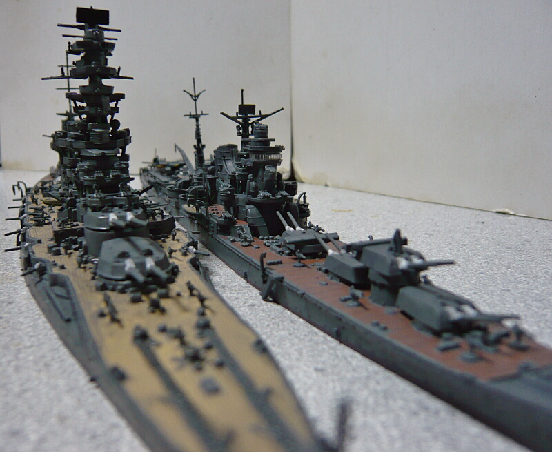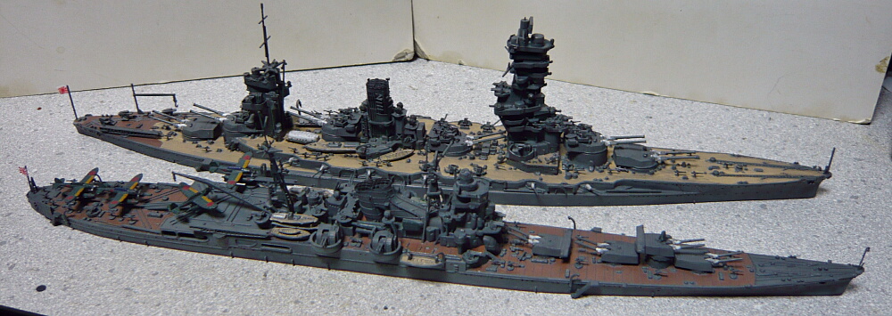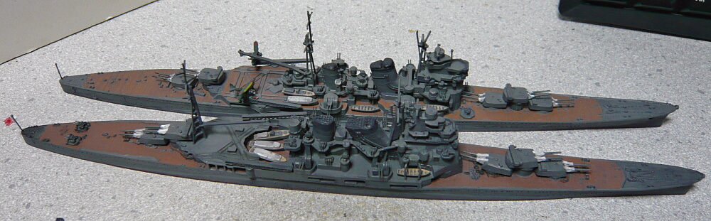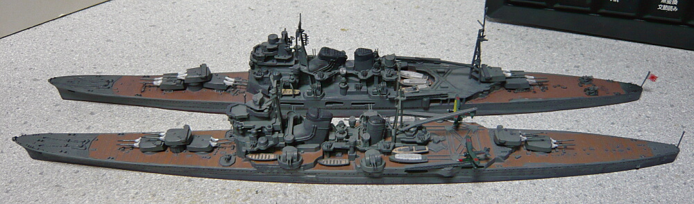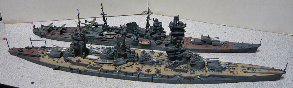 次型である妙高型重巡洋艦の足柄と。でかい方が足柄。艦尾付近の雰囲気は似ていますが並べてみると思ったほど似てない印象。