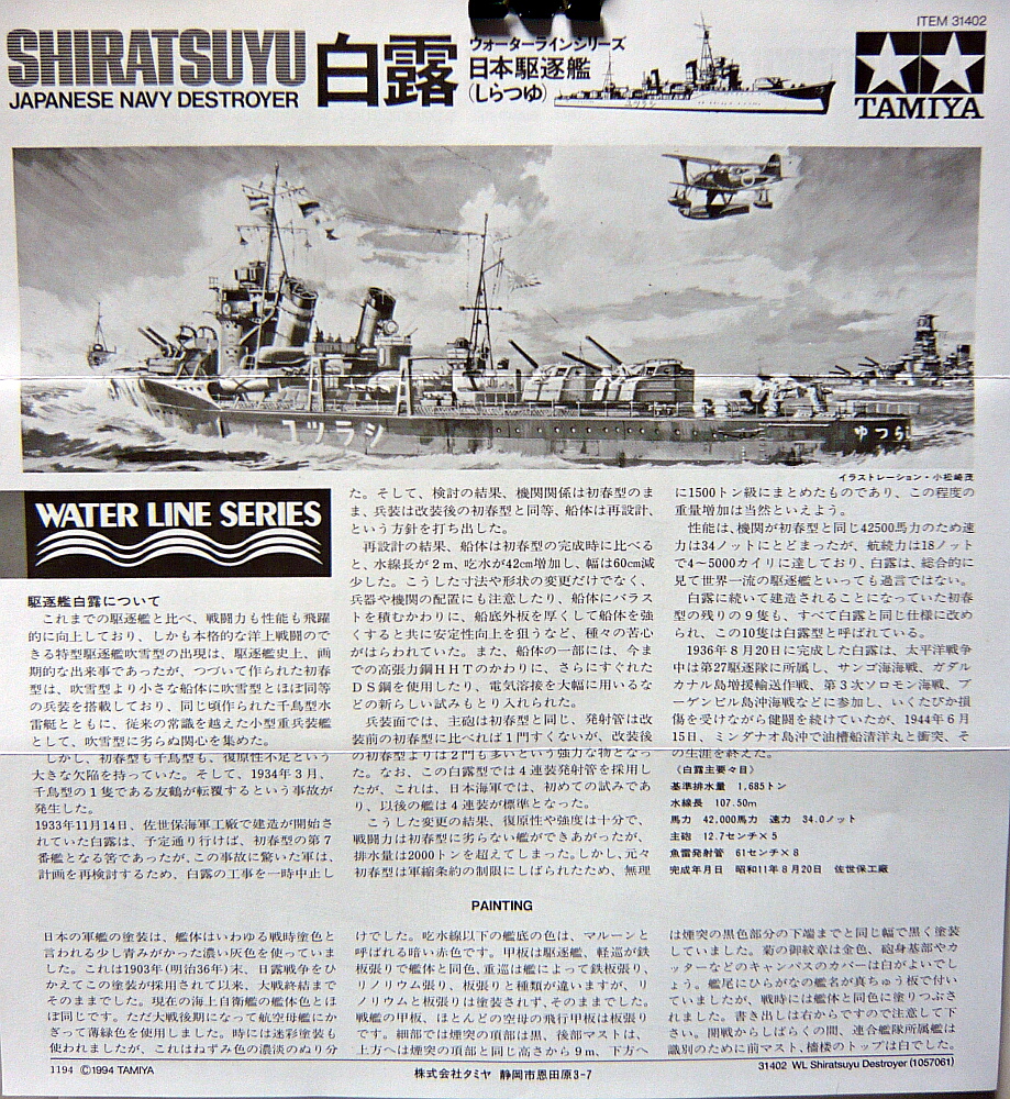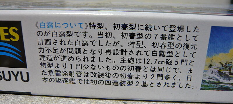タミヤの白露はウォーターラインシリーズのナンバリングが402と吹雪(401)の次ですが元々はNo.30とかなり古いキットになります。