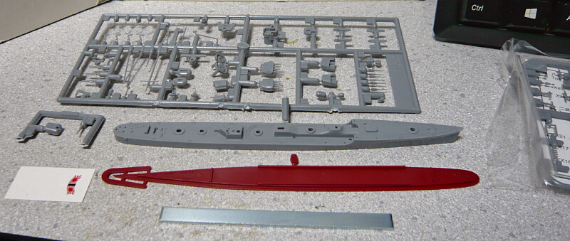 主要パーツ群。艦自体が小さいのもありますが、古い駆逐艦キットに毛が生えた程度です。